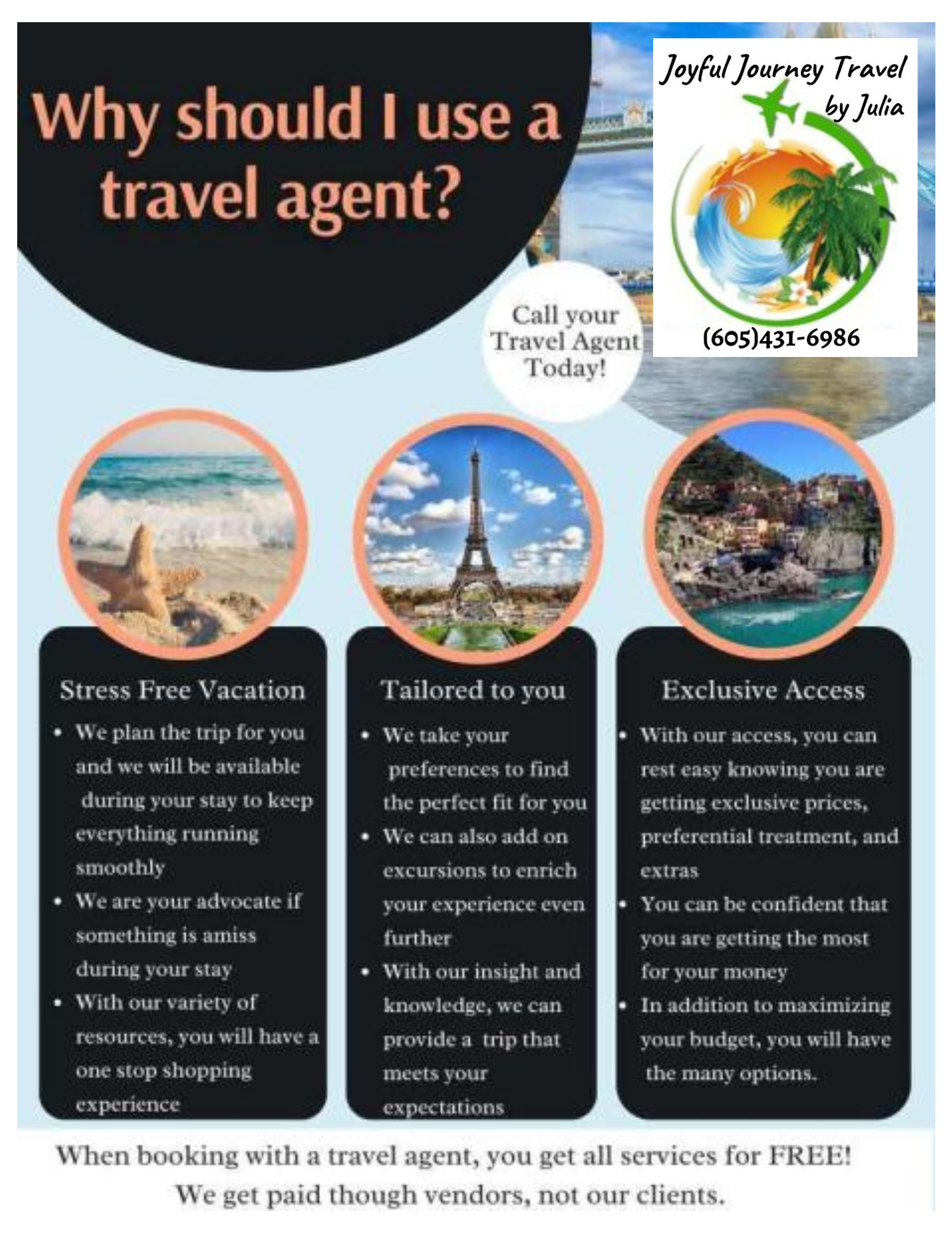 Joyful Journey Travel by Julia is a licensed, bonded and insured agency.